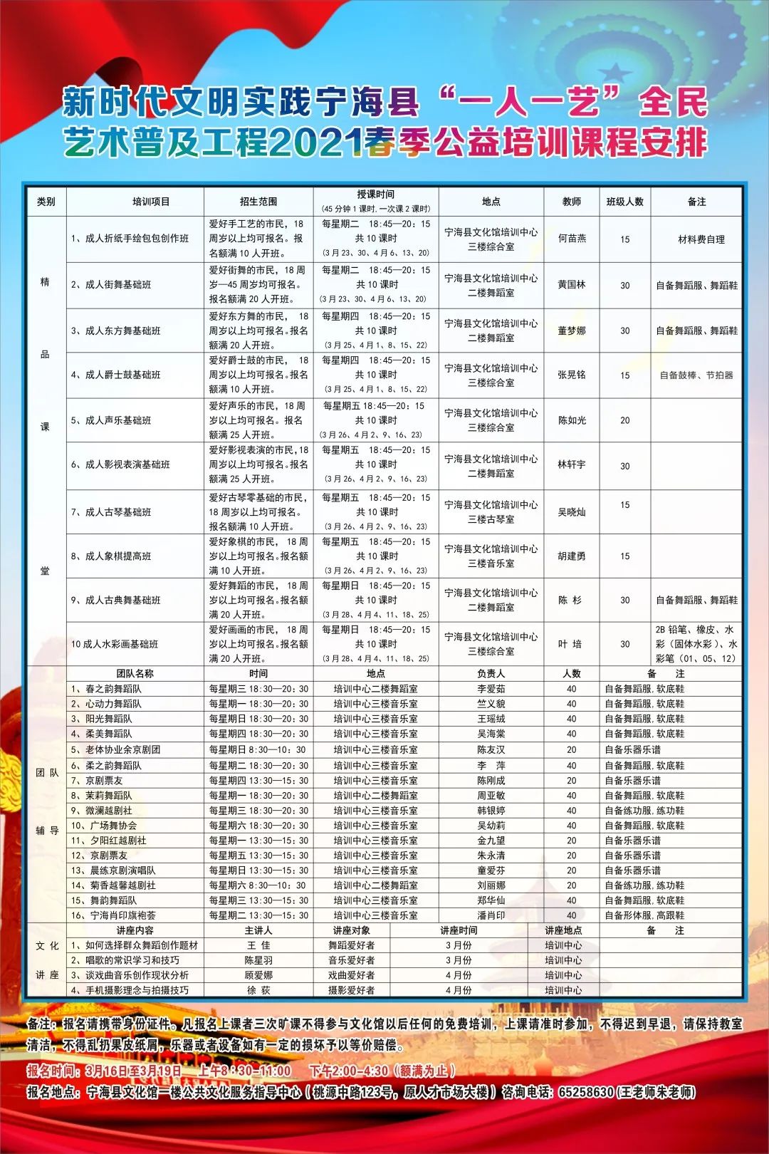 原标题:《不可错过!声乐、舞蹈、象棋.....宁海这个春季公益培训报名啦!》