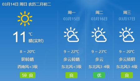 ▲3月14日是农历二月初二,民间称“二月二 龙抬头”,是中国的传统节日之一。受短波槽东移影响,预计3月14日陕西全省阴天,关中南部部分地方、陕南有阵雨或小雨,陕北有5-6级偏南风;15日,全省阴天转多云,陕南东部部分地方有小雨,陕北北部有5-6级偏北风并伴有浮尘,日平均气温陕北下降6-8℃;16日,全省多云转阴天,关中南部、陕南大部有小雨,陕北有5-6级偏南风,北部局地阵风可达7级,关中部分地方和陕南部分地方有5级左右偏东风。西安市气象台3月13日16时发布天气预报,预计14日及16日西安市有弱降水。