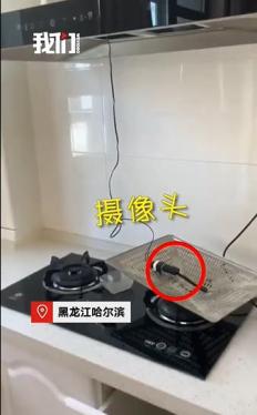 ▲3月11日,一名网友发布视频称,在哈尔滨一公寓内发现摄像头。画面显示,摄像头掉落在油烟机下方,正对着该网友的床。12日,新京报记者从辖区爱建路派出所获悉,涉事公寓位于爱琴花园小区,警方正在对经营方及上任租户进行调查。