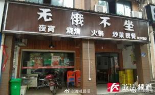 ▲近日,有长沙市民反映岳麓区一门店招牌内容低俗。通过调查,该门店为一家餐饮夜宵店,招牌上店名为“无饿不坐”,与成语“无恶不作”谐音。该店名违反了《广告法》,并且营业执照上的店名与招牌上的不符。因此,该门店被要求进行整改。