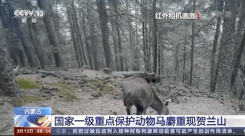 ▲近日,在内蒙古阿拉善盟的贺兰山国家级自然保护区,工作人员发现监测到世界濒危物种、国家一级重点保护野生动物马麝的珍贵影像。