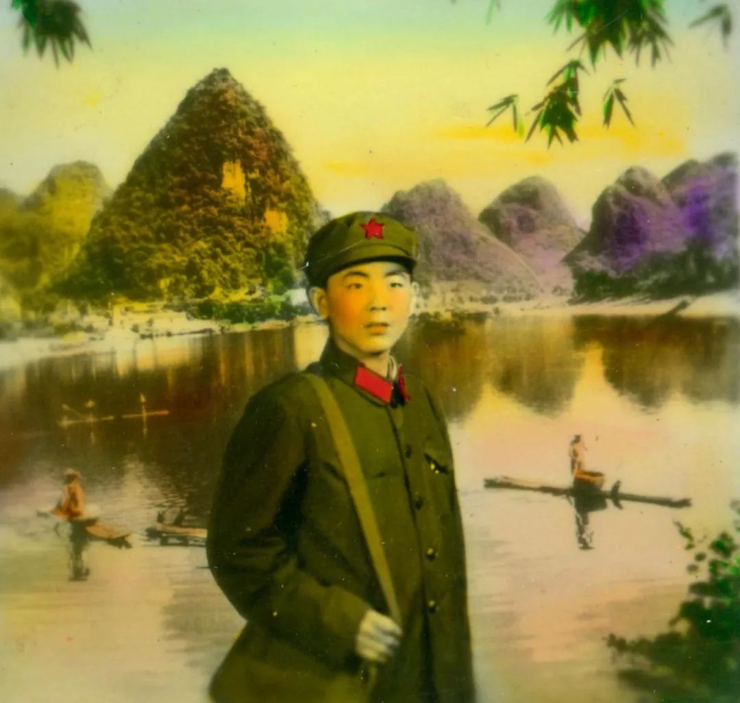 1976年5月,我当兵第3个月,拍摄于山东博山中国照像馆。1977年,跟在电影隊的战友孙广军学的照片上彩,虽己40多年,但色彩未褪。这算是我的第一張彩照。史云平(山西稷山)