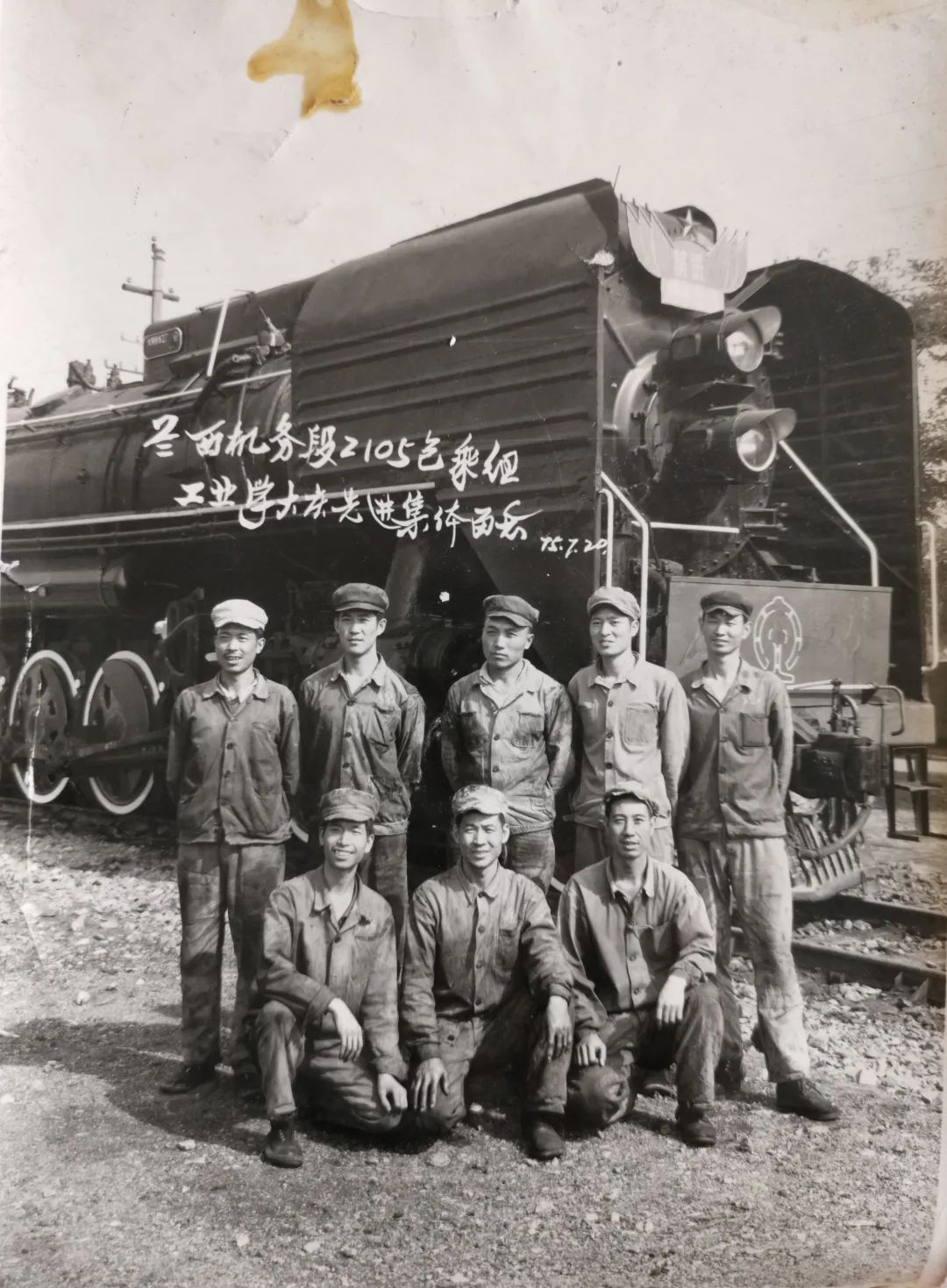 1975年7月20日,甘肃省兰州市兰西机务折返段2105包乘组先进集体留念。李海峰(浙江舟山)