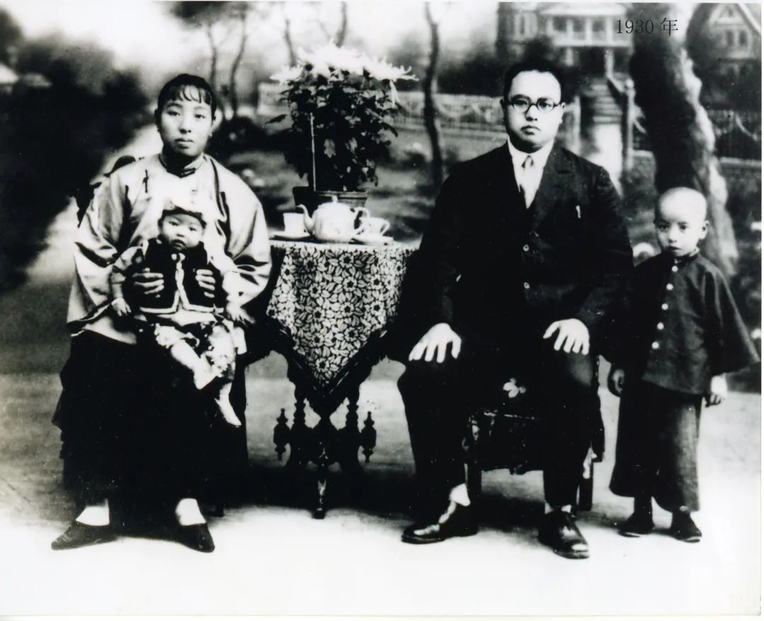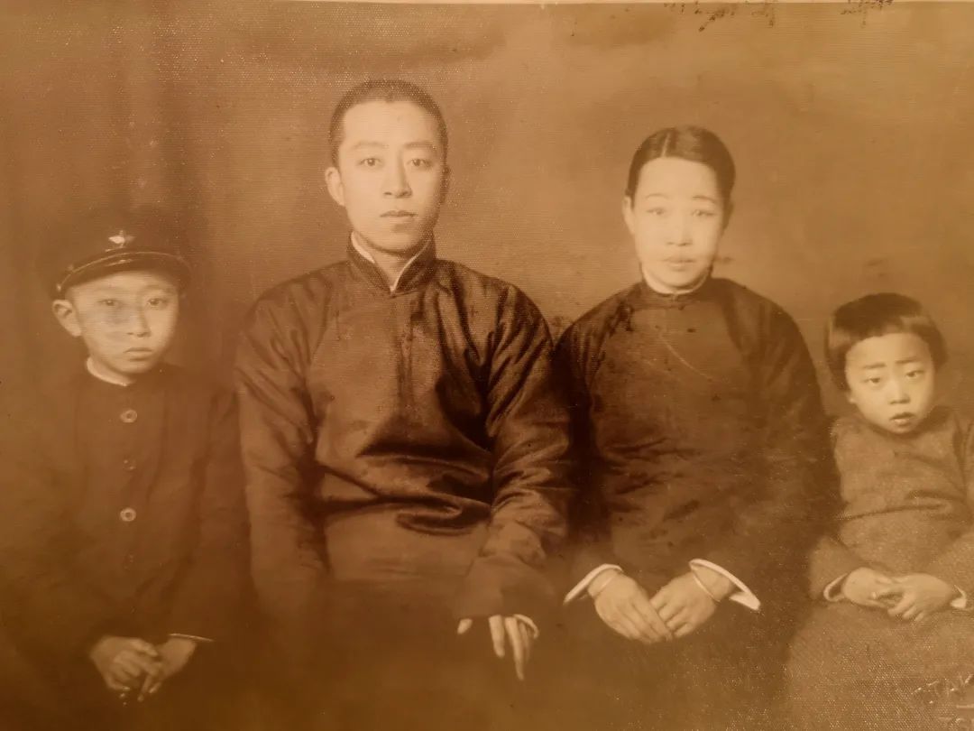 我的爷爷奶奶。照片拍摄于1930年,时年,爷爷要去德国做生意,临行前与奶奶和大伯及大姑(奶奶怀抱者)合影,地点是烟台照相馆。落叶恋风(浙江宁波)