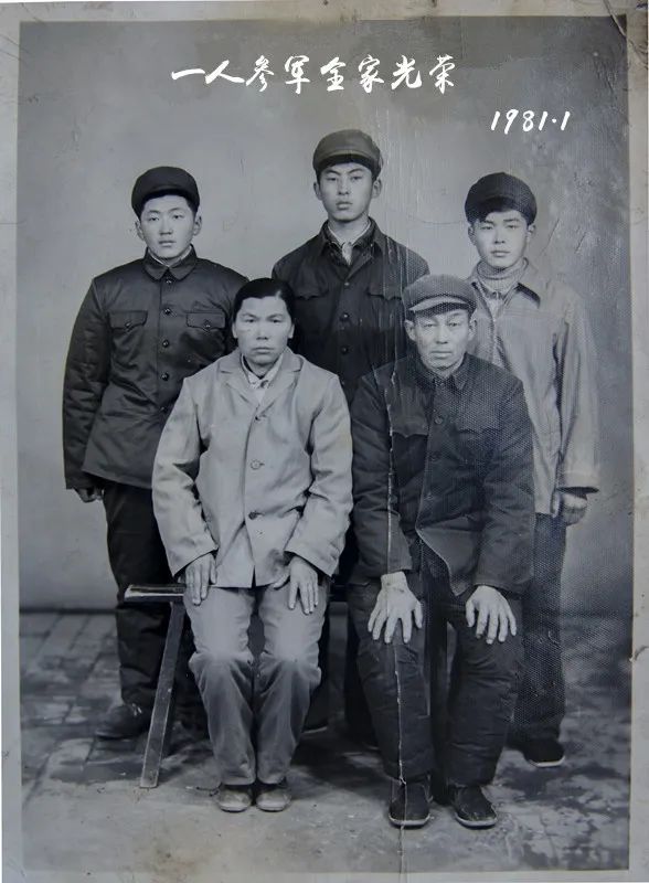 1981年1月,内蒙古鄂尔多斯市鄂托克旗。《一人参军 全家光荣》回想过去八十年代初期,出生在农村的有志青年,每当学业完成之时,似乎唯有参军才是走出田间劳作的一条出路。那个年代参军可以说是百里挑一,众星捧月,其经历非常幸运,使人感到无尚光荣。在离开家人时都要与家人照一张全家福,想家时看看照片,以此来缓解对家人的思念之情,就是这张照片也真实的记录下了我家那个时期衣食住行,也反映出了一个时期入伍从军的社会背景。