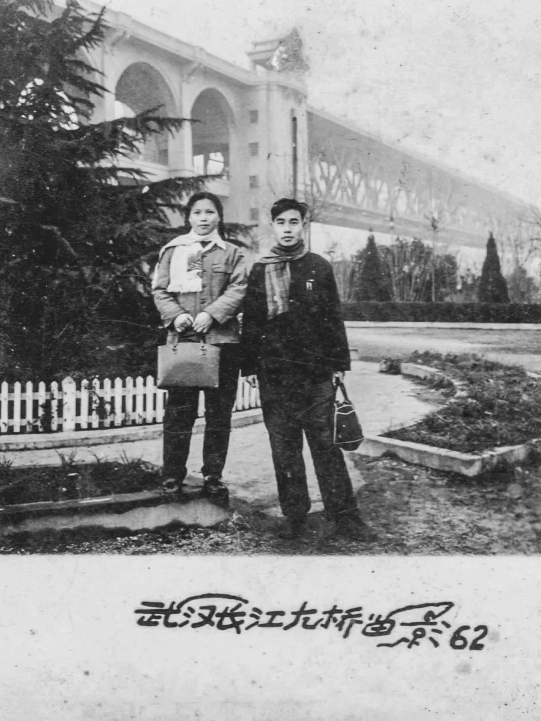 1962年1月18日,父亲母亲结婚之日在武汉大桥合影留念。刘冬兵(辽宁营口)