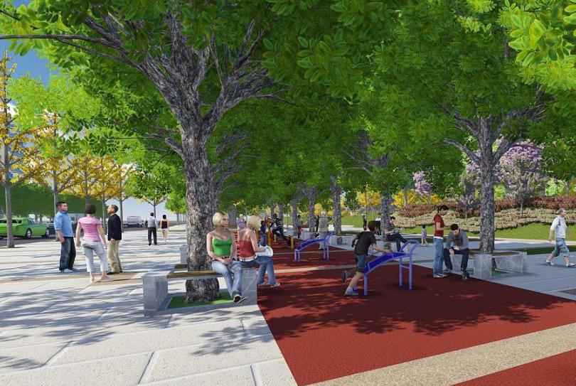效果图九老仙都片区老旧小区改造内容包括:场地道路工程改造面积52074㎡、墙面工程改造面积127993㎡,并配套改造排水、雨水工程、安防工程、强弱电工程、照明工程、景观工程、充电桩工程等。