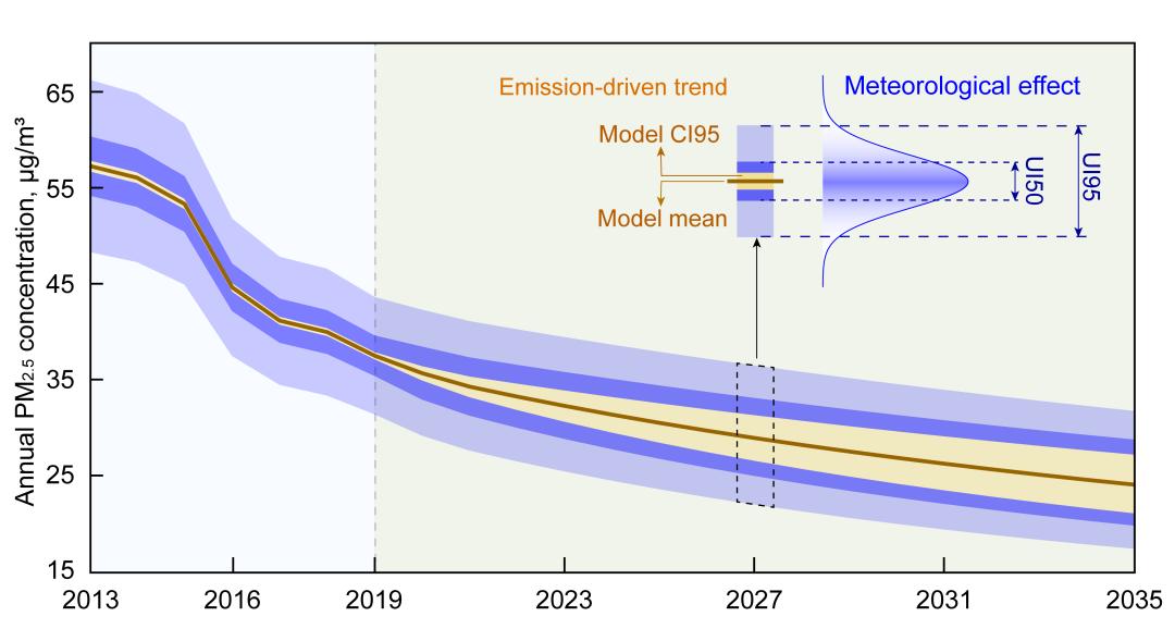 近日,南方科技大学陶澍院士课题组在Cell Press (细胞出版社)旗下环境科学旗舰刊One Earth上发表了一篇新研究,题为“PM2.5 reductions in Chinese cities from 2013 to 2019 remain significant despite the inflating effects of meteorological conditions”,课题组利用一种新方法,结合简约模型和概率模型,定量评估了中国现阶段(2013-2019年)及未来(2020-2035年)PM2.5浓度对控制政策的响应情况。