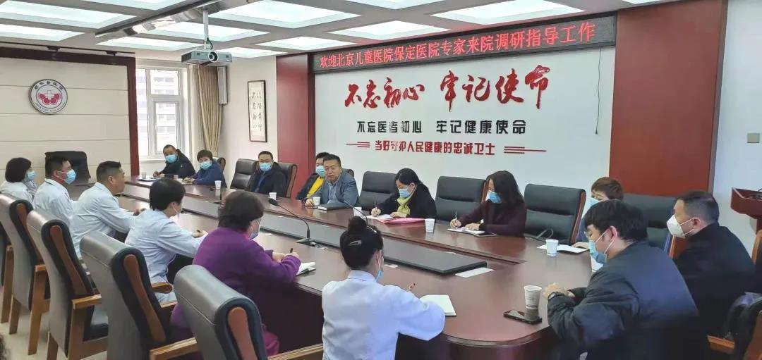 近日,北京市儿童医院保定医院医务科、质控办、护理部、感控办、信息科、门诊儿内科专家到县医院调研指导工作。