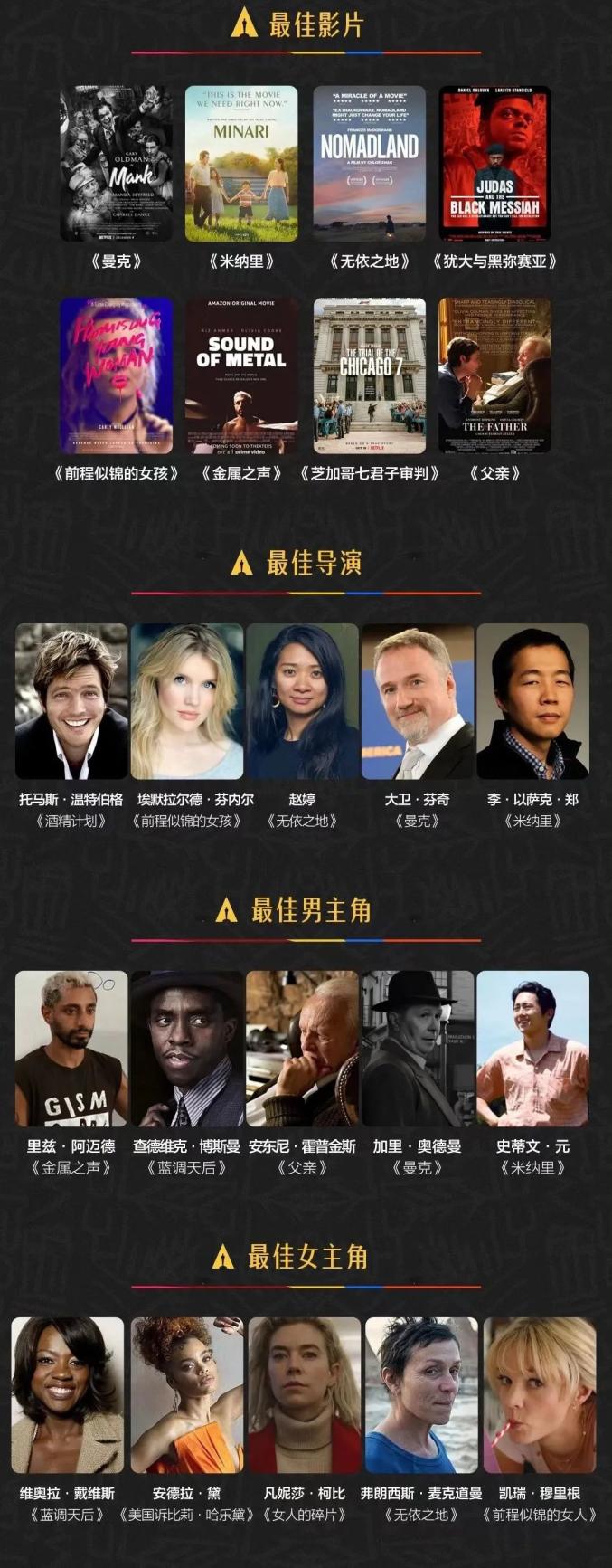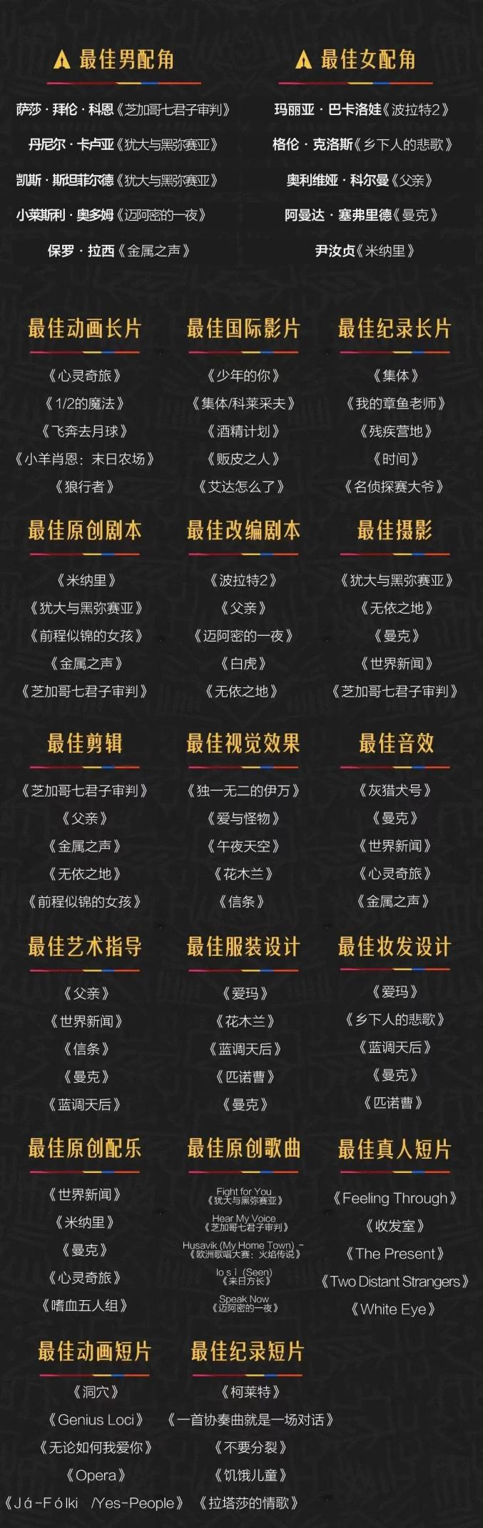 本届奥斯卡完整提名名单