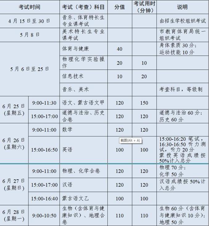 附件:鄂尔多斯市2021年初中学业水平考试安排表