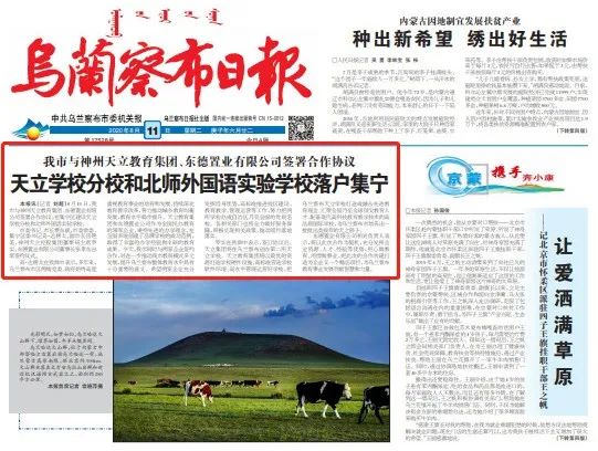 乌兰察布市集宁区天立学校是市委、市政府2018年引进的重点教育项目,由中国品牌实力教育集团、中国综合实力教育集团—— 神州天立教育集团倾心创办,实施幼小初高一体化教育的现代化精英学府。三年来,乌兰察布市委政府、集宁区委政府、市区两级教育局等多位领导莅临学校指导工作!2020年6月市区主要领导亲自带队到成都集团总部考察,并希望天立能为重振乌兰察布教育雄风做出贡献,2020年8月10日,乌兰察布第二所天立学校正式签约。