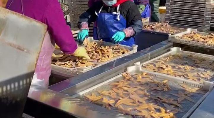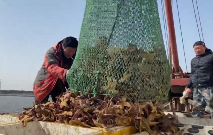 一口吞万斤,海星“天敌”来了!外地收购商跨省来青岛追“星”,海星捕捞量明显减少