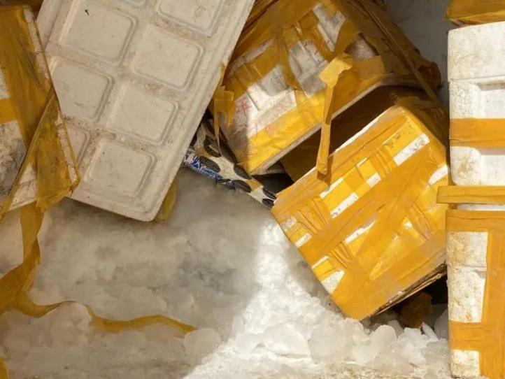 装海星的车厢里备好了冰。“海星天敌是我们”