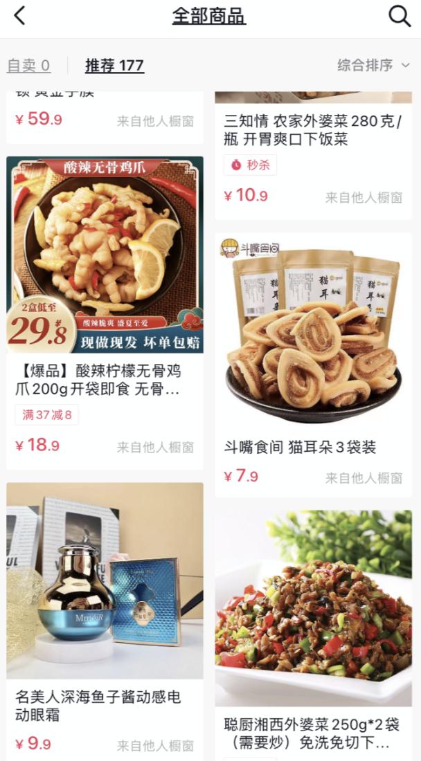 比如在老人的直播间中,卖的,不是当地的农产品,而是一些不同品牌的小零食。