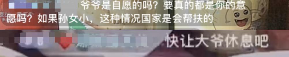 直播间的评论区,时不时地闪出「让爷爷休息吧」、「爷爷,被绑架了你就眨眨眼」等声音。