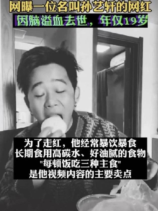 今年年初,年仅19岁的吃播主播孙艺轩,脑出血死亡......
