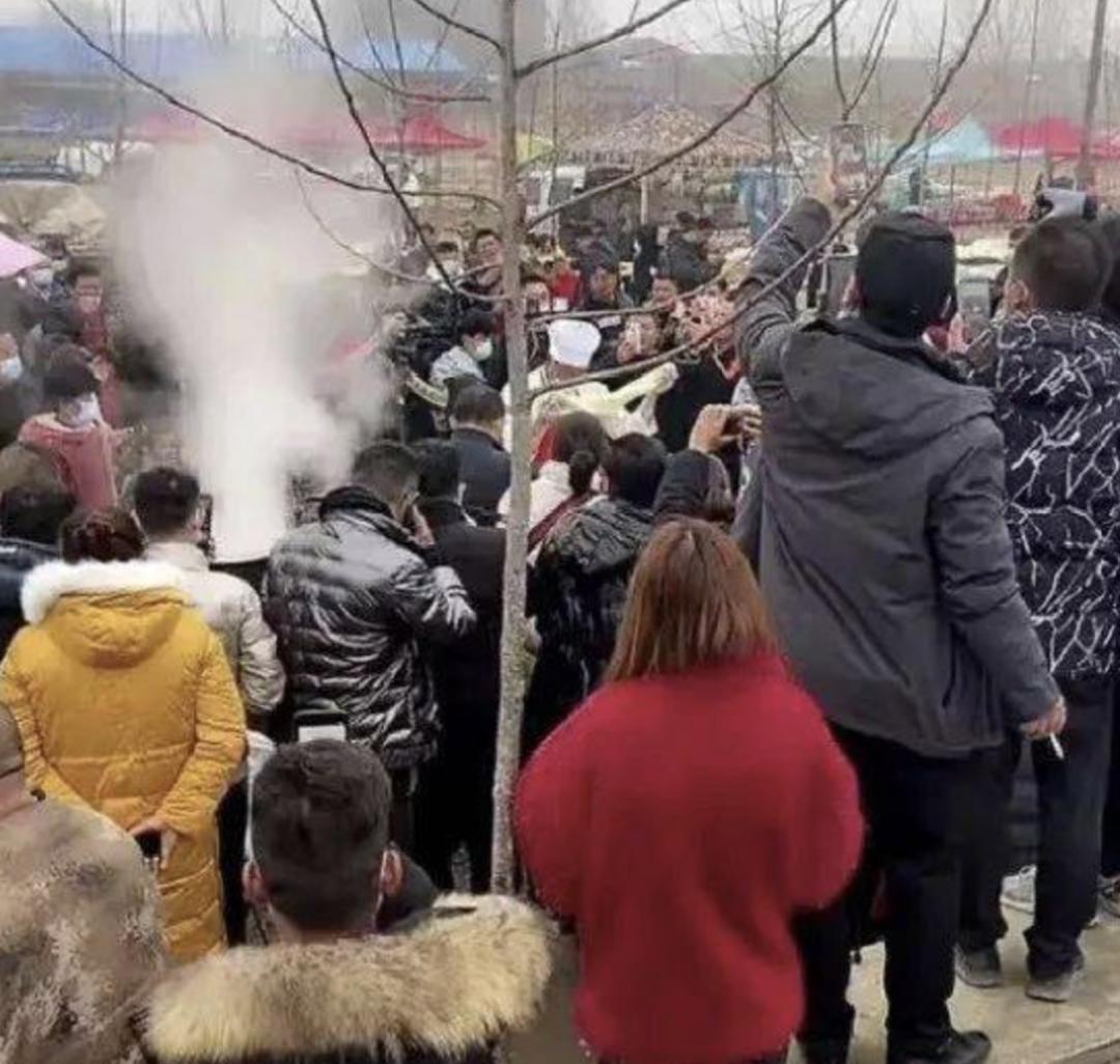 一位网友在山东农村赶集场景时,无意中拍到了拉面哥的小摊。