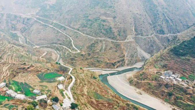峨柯梁子山下,清澈的可渡河绕村而去。