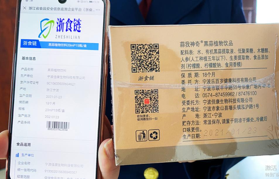 据介绍,“浙食链”是浙江省市场监管局在“浙冷链”基础上组织开发建设的食品安全追溯闭环管理系统,该系统将食品生产至消费的各环节进行扫码信息叠加和数据归集,推动食品生产经营主体进货查验记录全程电子化、食品追溯链条清晰化,实现食品(食用农产品)可时时追溯、事事倒查。作为2021年省政府民生实事项目之一,已于今年3月15日正式上线运行。“今年2月份,我们就启动‘浙食链’系统试运行,目前已在部分产品和批次开始加印‘浙食链’二维码。”宁波佳康生物科技有限公司是我县首家试点推广企业,总经理王海明介绍道,“该系统要求企业从进货原料入手,将生产产品的上游供货商及产品信息、企业质量控制信息以及销售去向等信息全部录入,以实现企业进出库食品安全数据的闭环管理。这项工作运行起来,企业工作量比较大,但促进食品安全显而易见。”