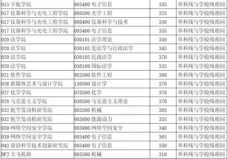 小萱提供的学院复试资格基本线,均来自北航各学院官方网站,限于篇幅,仅展示了分数线。其他注意事项和说明,请大家点击学院名称,查收具体复试通知、下载考生名单等。大家亦可点击下方网址查看汇总链接:http注意:部分招生单位根据一志愿复试录取情况决定是否接收调剂。对于接收调剂的单位,将在教育部调剂系统公布审批通过后的调剂工作办法,请考生届时登录教育部调剂系统,关注有关通知。教育部调剂意向采集系统20日开通,调剂服务系统22日正式开通。截至3月20日
