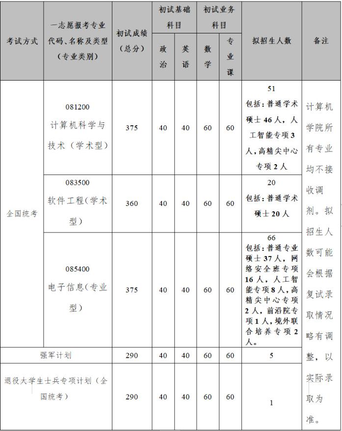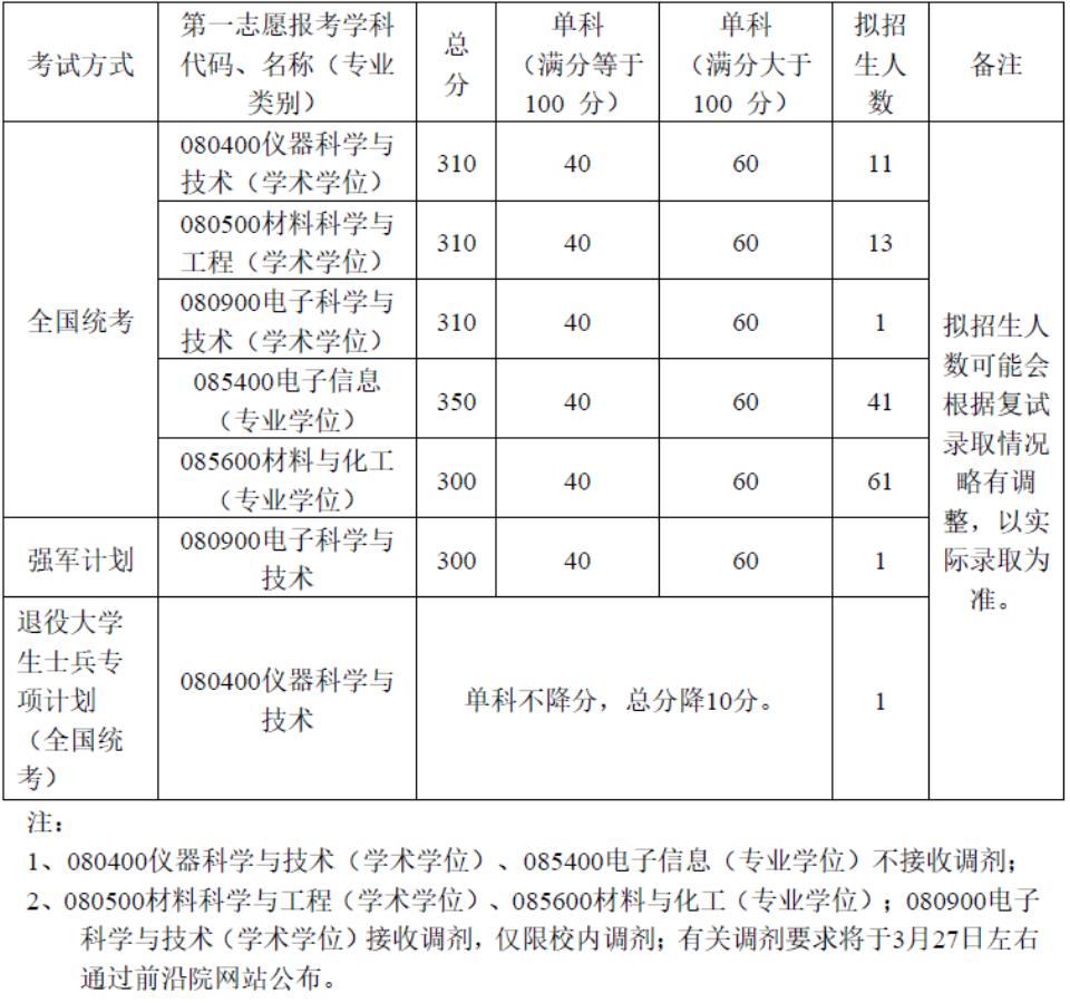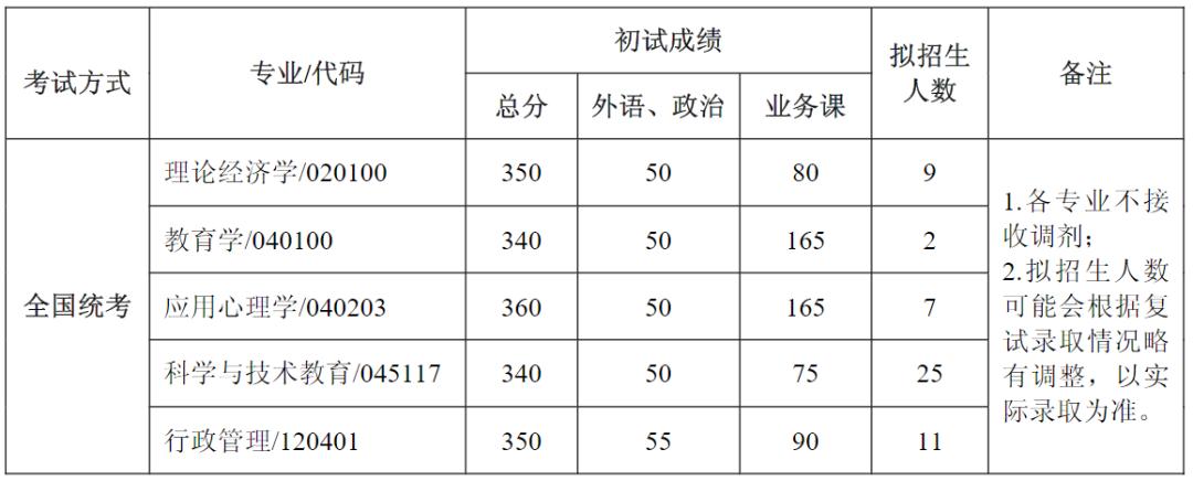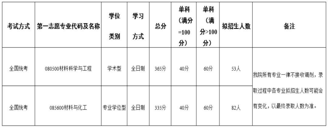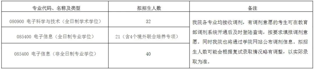 我校部分招生单位接收调剂汇总如下