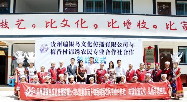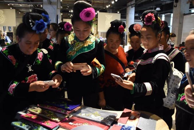 ▲绣娘代表到杭州学习参观。为拓展发展空间,提升苗绣市场影响力,凯里市积极与多方合作,打造苗绣品牌形象。与深圳艺立方公司合作,打造“凯里试点”,建设“走出去”合作平台。邀请许晴、赵薇等为苗绣代言,提升知名度。通过联合国开发计划署牵线,与知名化妆品牌签订苗绣大单。在巴黎组织中国苗绣公益展,在上海举办中国苗绣展等。苗绣进一步与现代都市接触、结缘,走向时尚和国际舞台。