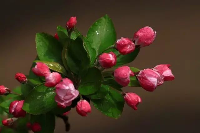微雨斑斑,晕湿海棠,渐觉燕脂红褪。