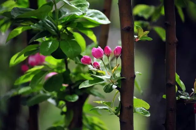 血染蜀罗山踯躅,肉红宫锦海棠梨。