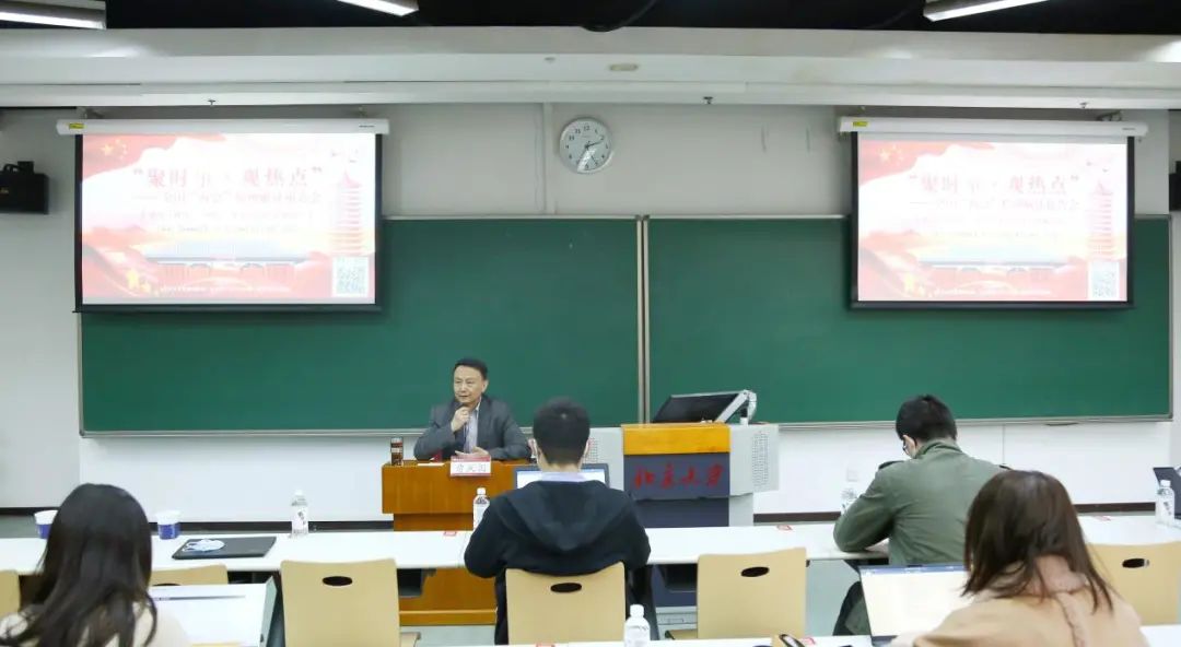 【小i导读】:2021年3月19日下午,由北京大学党委统战部、学生工作部、人事部暨党委教师工作部联合举办的“聚时事·观热点”——全国“两会”精神解读报告会在第二教学楼106教室举行。此次报告会于线下线上同步进行,报告会由党委统战部副部长高慧芳主持。全国政协常委,北京大学中外人文交流研究基地主任,北京大学国际关系学院原院长、教授贾庆国作题为“欣喜与期待:‘两会’见证国家发展新起点”的主题报告,讲话在学生中引发了热烈的反响与讨论,接下来就跟着小i一起来回顾这次精彩的报告会吧。