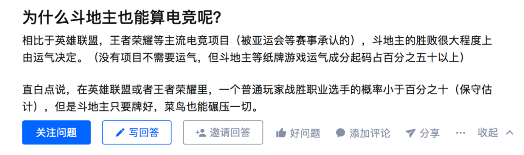 在知乎上,有人曾满怀不解地发问:为什么斗地主也能算电竞呢?