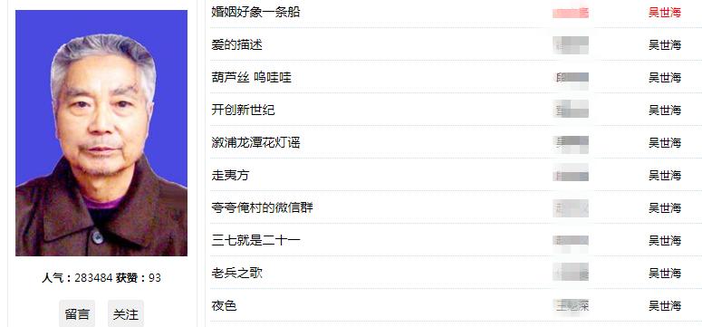 吴世海在词曲网上创作的页面除了故乡溆浦龙潭,长沙的红色景点、风土民情、古街历史等都是吴世海的创作素材。比如,他创作的《长沙情》,既写历史,也诉今朝,展现了长沙的时代变迁;他创作的《湘女生在芙蓉国》,歌颂的是湘女豪杰的奋斗和牺牲精神;他创作的《我们都是“蒙面侠”》,描述的是万众一心抗击新冠肺炎疫情的场景……一千多首歌曲,饱含了吴世海对党对人民对社会的热情,洋溢着满满的正能量。