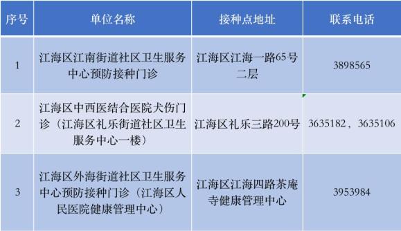 二、接种点(其他接种点将逐步开放,具体另行通知)