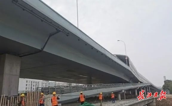 杨泗港快速通道跨铁路高架人行通道正在加紧施工。记者刘海锋 摄网友:2021年1月杨泗港大桥南李路上下匝道开通,给南湖交通带来的便利,但近期车流量加大,每天早晚高峰堵车严重,主要原因是很多车辆需要在狭窄的空间掉头上杨泗港大桥,尽快开通丁字桥南路的右拐上桥辅道是当务之急,看到有工人在进行施工,不知具体什么时候能正式通车?