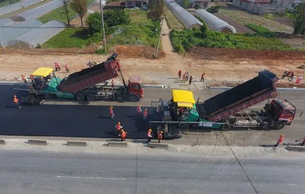 阳大公拓宽改造工程摊铺沥青。通讯员杨爱国 摄网友:新洲航天大道也修了很久了,具体什么时候可以通车呢?