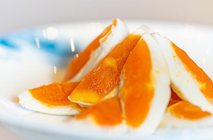 袁枚的《随园食单·小菜单》有“腌蛋”一条。袁子才这个人我不喜欢,他的《食单》好些菜的做法是听来的,他自己并不会做菜。但是《腌蛋》这一条我看后却觉得很亲切,而且“与有荣焉”。文不长,录如下:腌蛋以高邮为佳,颜色细而油多,高文端公最喜食之。席间,先夹取以敬客,放盘中。总宜切开带壳,黄白兼用;不可存黄去白,使味不全,油亦走散。