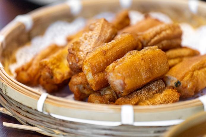 汪曾祺先生对油条有个创新,将它做成了一道菜,菜名:塞肉回锅油条。说起来也简单,只需将油条切成一寸左右的段子,掏出瓤子,塞入肉蓉、葱花、榨菜末,下锅一炸,酥脆香溢,他说:“嚼之声动十里人。”