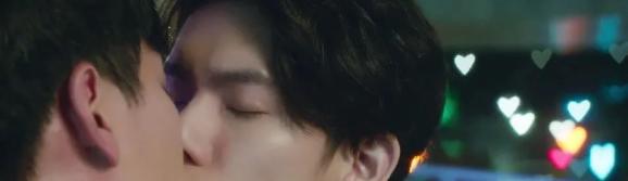 接吻时,背景里的灯光都是心型;