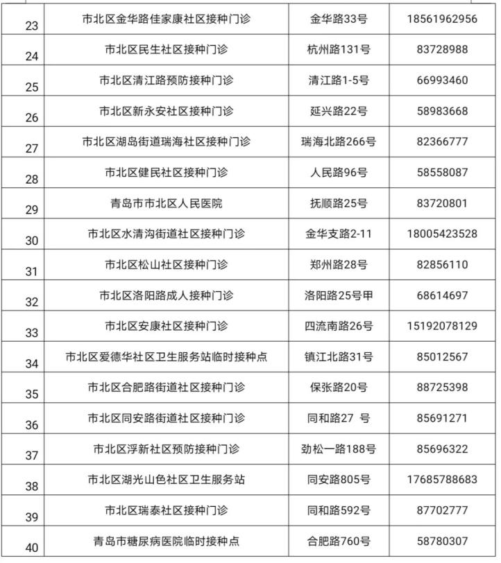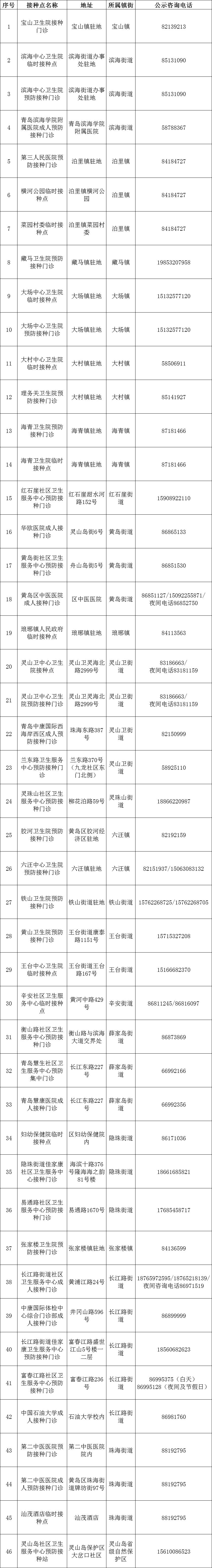 崂山区新冠疫苗接种点各街道对外公开联系方式