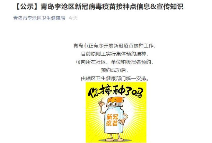 原标题:《最新发布!青岛这些地方可免费接种新冠疫苗》