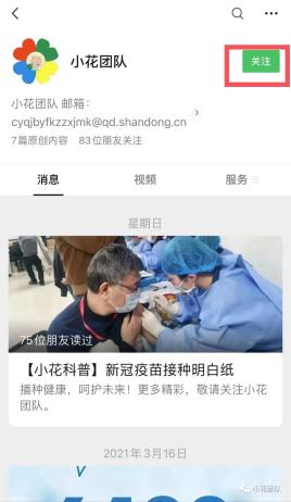 二、线上预约: 请关注小花团队或者城阳区疾病预防控制中心微信公众号,通过“疫苗预约”模块进行线上预约,预约成功后,接种门诊会安排时间进行接种。