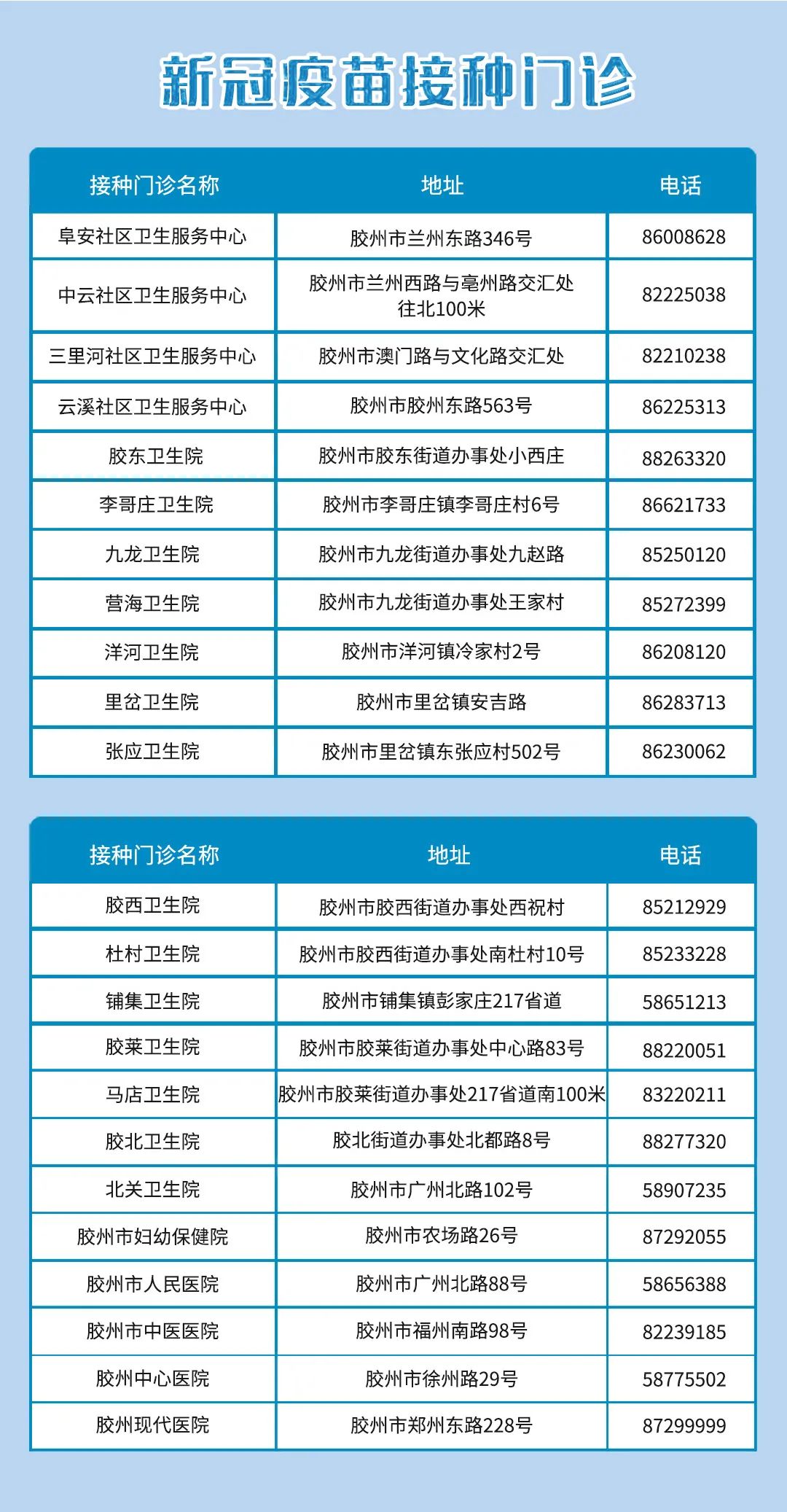 青岛西海岸新区新冠病毒疫苗接种点信息公示