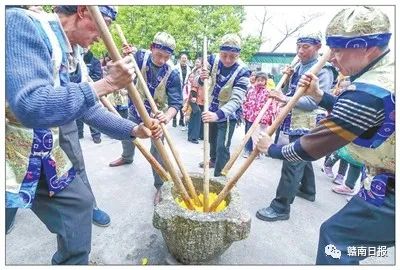 ▲打黄元米馃。每年秋收过后,赣县田村人有打黄元庆丰收的习俗,更有“不打黄元不过年”的说法。田村产的黄元米馃历史悠久,口味正宗,早在明朝正德年间就被列为贡品,是江西省特色传统名点。因此,田村被誉为“黄元米馃之乡”。