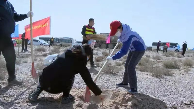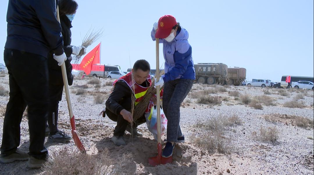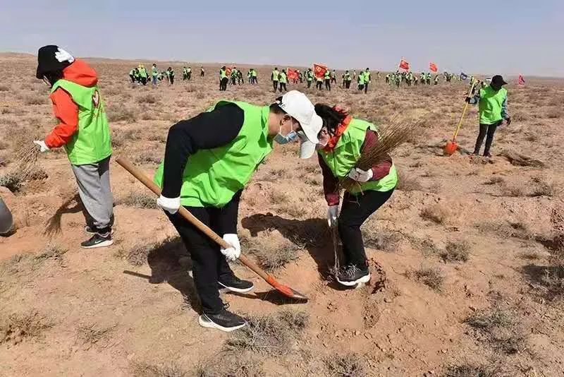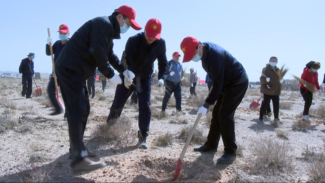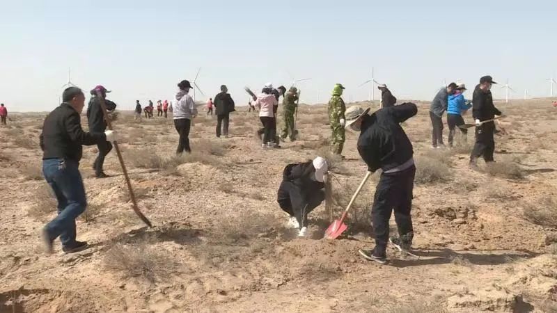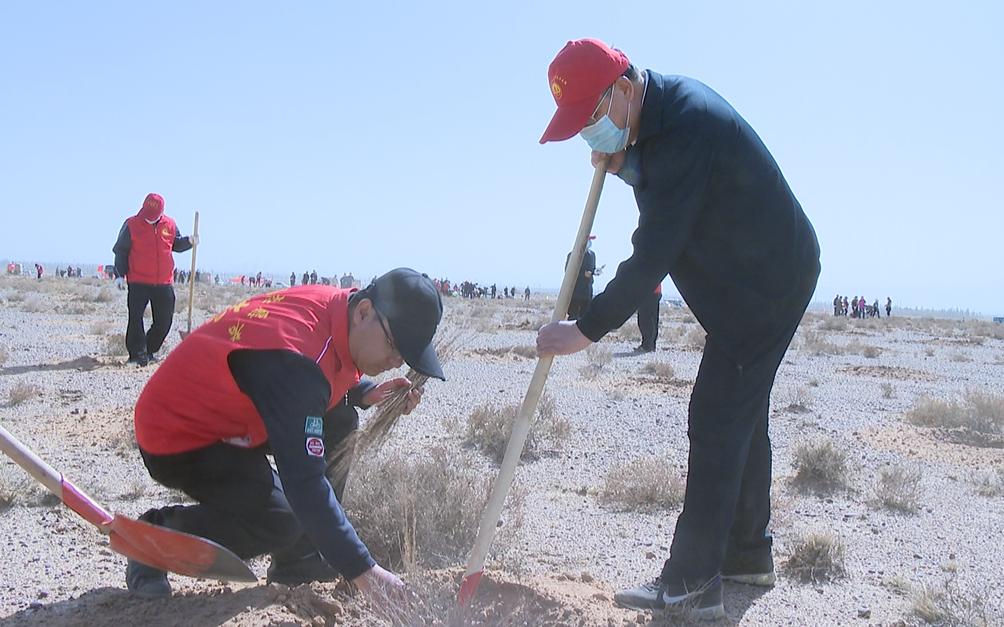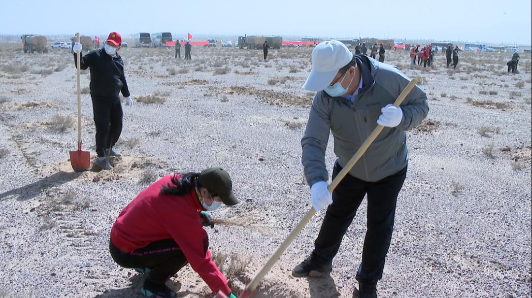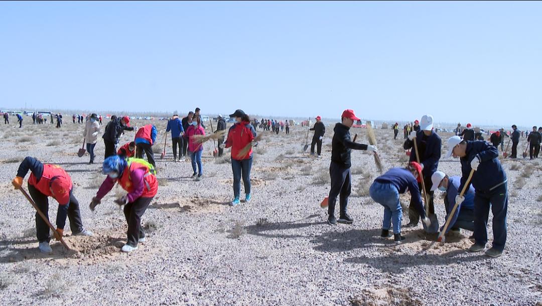 春回大地万物苏,植树添绿正当时。3月26日下午,在金川区北大滩国有荒滩植树造林项目现场,我市1600余名机关干部职工及志愿者挥锹植绿,全市春季义务植树活动掀起高潮。