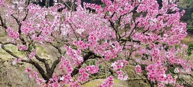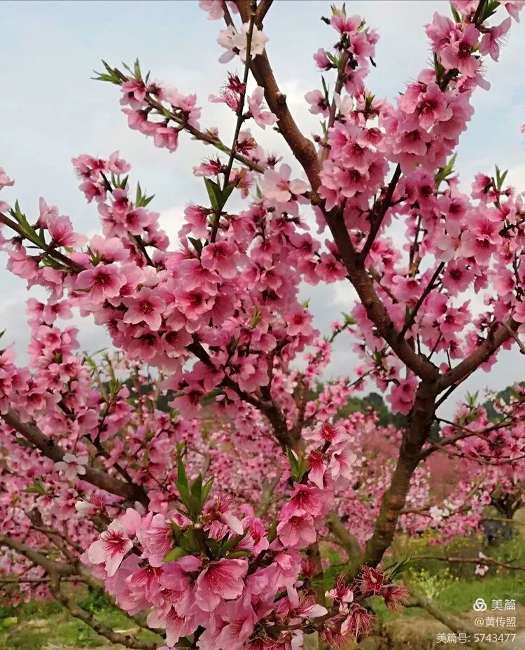 三月桃花遍野开,笑枝迎客八方来。