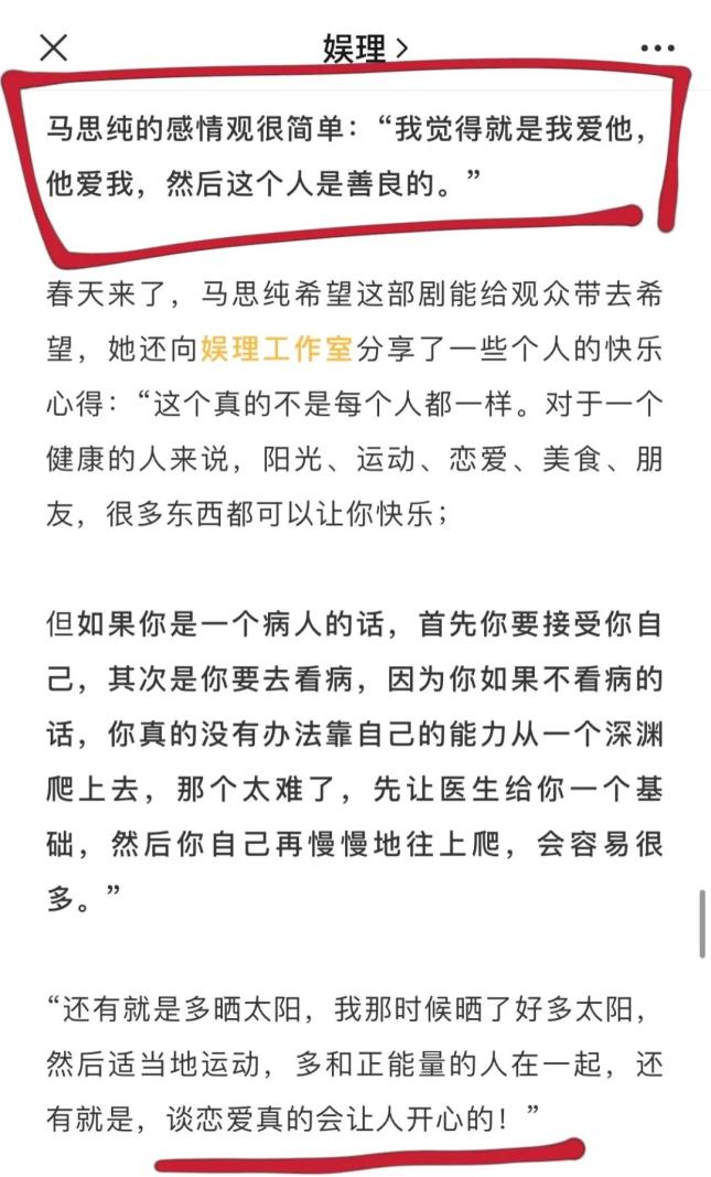 多年前的采访,似乎就已经暗示了这对姐妹花各自的命运。只想追求快乐的马思纯,希望通过恋爱来治愈自己: