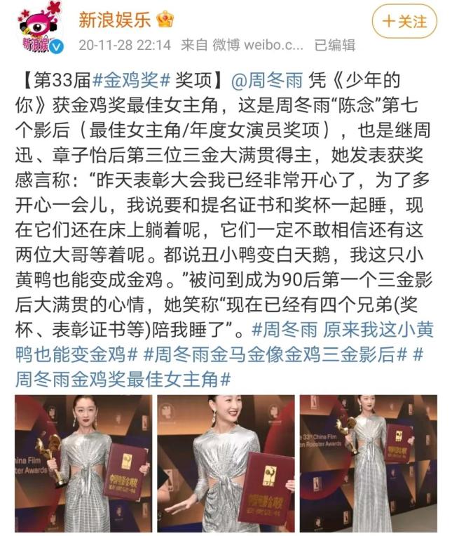周冬雨是不予置评,然后通过自己的努力用实力去回击。