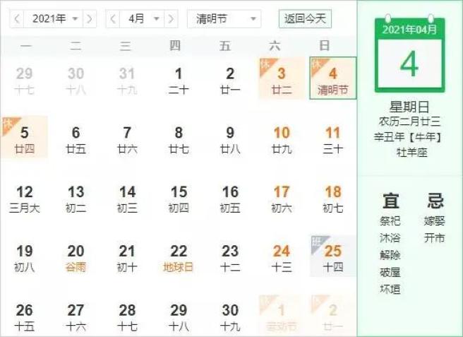 今年清明节放假三天