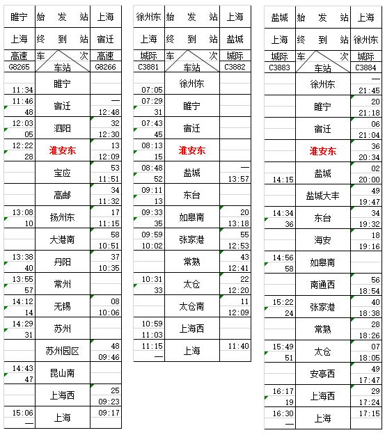 此外,盐城~上海C3881/C3884次1对,由周末线改为日常线,将途经淮安东停靠。