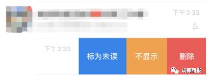2、标记未读、已读修改为蓝色向左滑动聊天消息页面,之前灰色的标为已读、未读按钮,变成了蓝色。